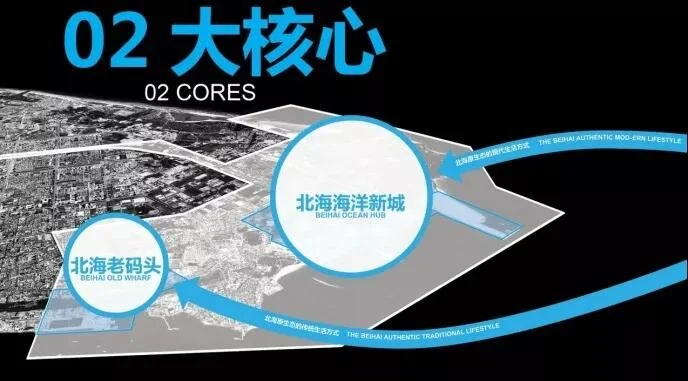 打造两个城市核心:北海老码头和海洋新城,分别展现北海的传统与现代。